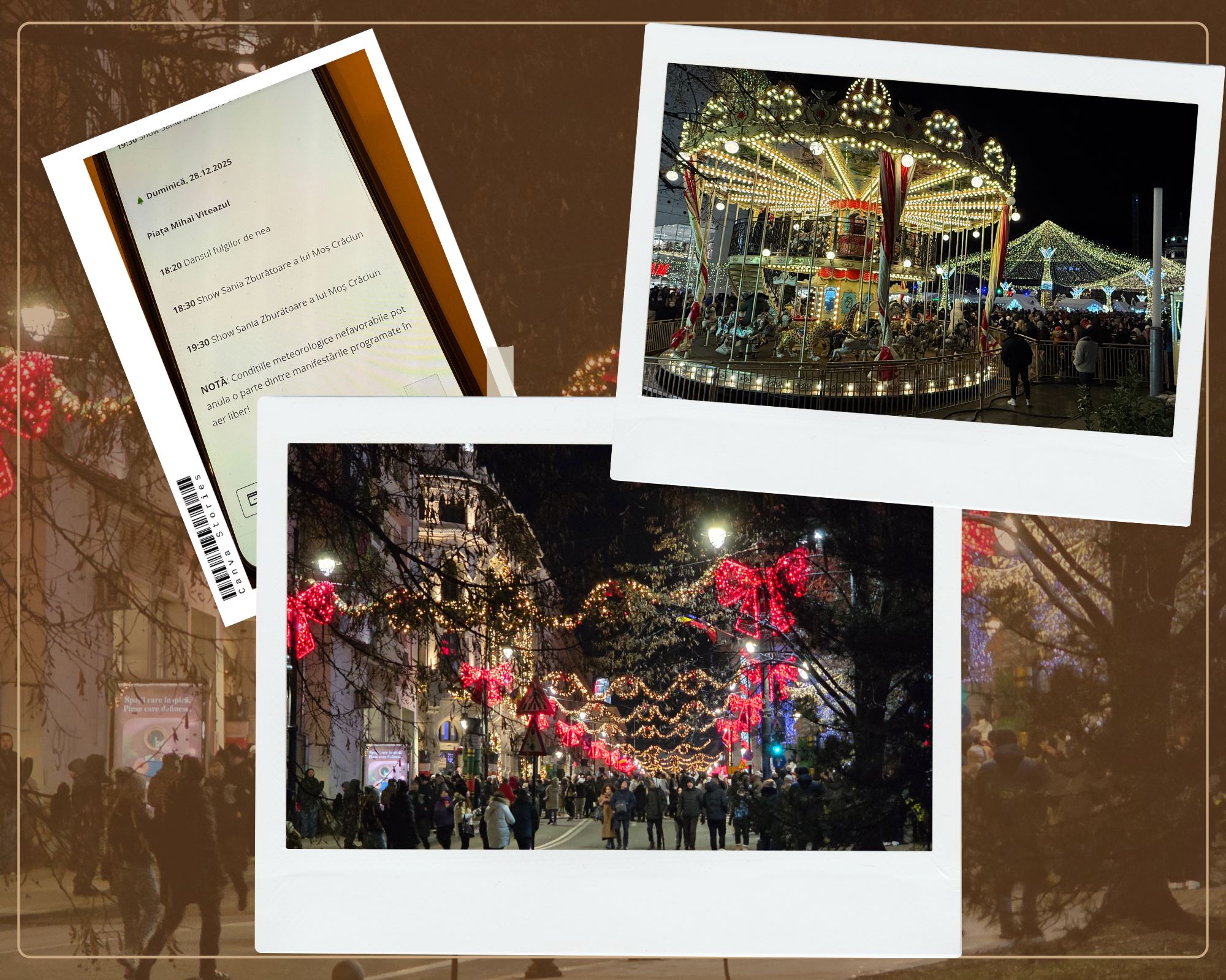 V-am plictisit deja cu atâtea amănunte? Ei bine, nu am terminat. La 18:30 sania Moșului ar fi trebuit să alunece și ar fi trebuit să înceapă să ningă cu zăpadă artificială. Trec 5 minute, nimic. 10 minute – nimic. Ați jucat când erați mici „telefonul fără fir”? Nu anunță nimeni la nici un microfon-megafon, dar oamenii au început să transmită din gură în gură că au așteptat degeaba. Ultima reprezentație a Moșului a fost pe 27 decembrie. Că atât ține Crăciunul și atât e Moșul pregătit. Ei bine, parcă începi să te simți tras pe sfoară de campania de marketing, dar dacă te-ai înșelat și e vina ta? Verificăm din nou informațiile avute la îndemână. Nu, nu e o greșeală, trebuia să ningă cu zăpadă artificială pe 28 decembrie la ora 18:30.