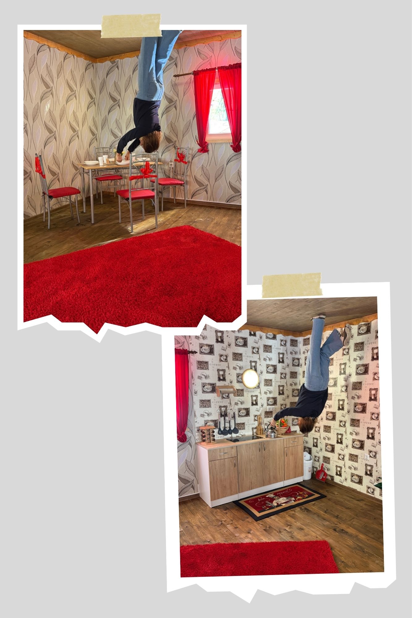 Căsuța răsturnată e dovada că atunci când viața ta e cu susul în jos nu e neapărat o tragedie. Lăsați grijile la intrare, dați frâu imaginației și distrați-vă în lumea upside down fără să vă  faceți prea multe probleme din cauza gravitației. Noi nu am avut copii, am avut ursulețul de la Salina Praid, care s-a distrat împreună cu noi. Enjoy your self!