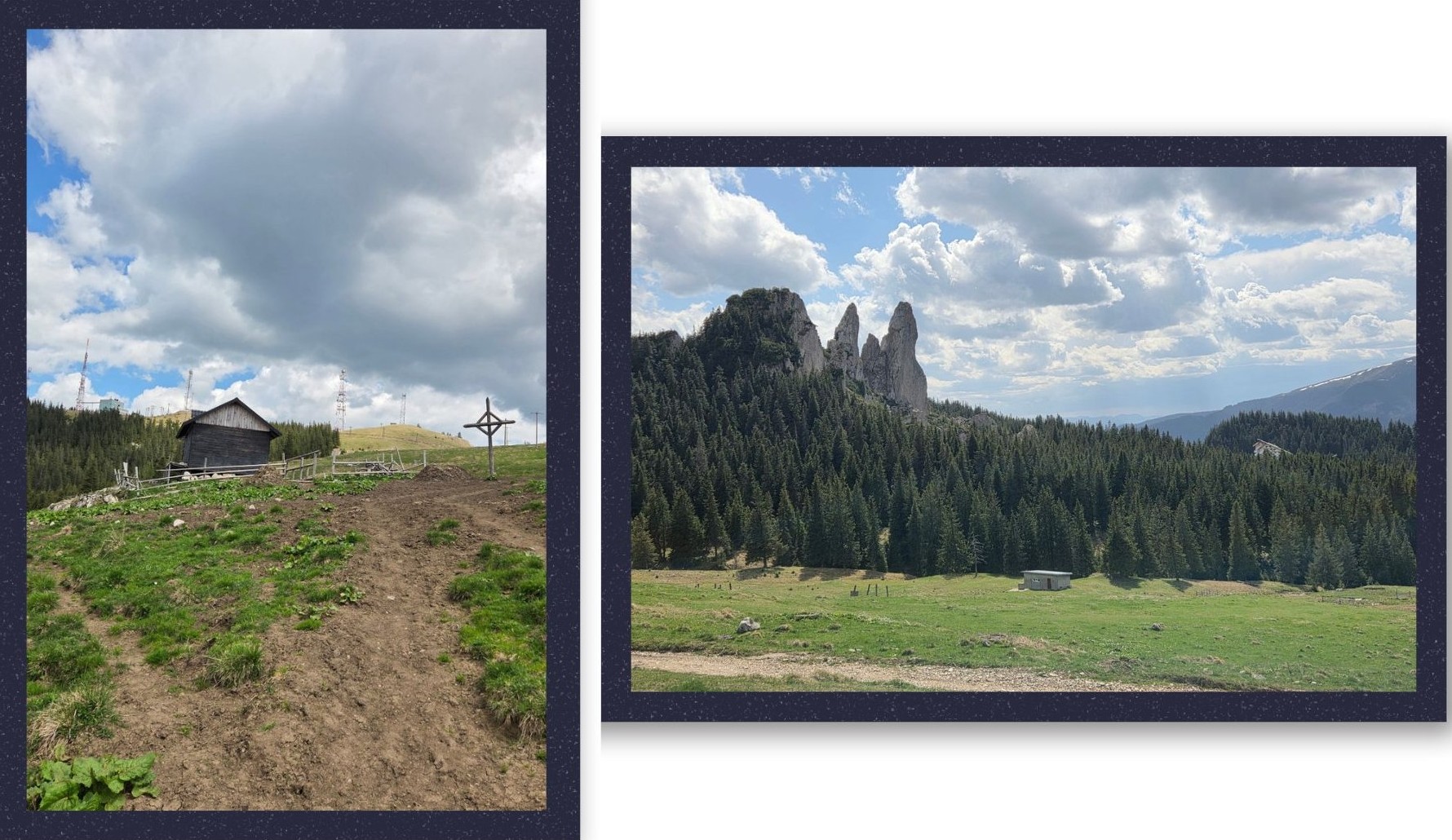 Prima indicație urmată: undeva înainte de a ajunge la Hotel Alpin-Rarău, se face la stânga pe un drum forestier nu foarte bun dar circulabil. Așa am făcut. Am mers până la punctul de Salvamont unde am parcat frumos mașina și de unde ne-am continuat drumul pe jos. Între timp, soarele și norii începuseră joaca de-a v-ați ascunselea, așa că am pus pe noi hainele impermeabile și din nou bine am făcut.