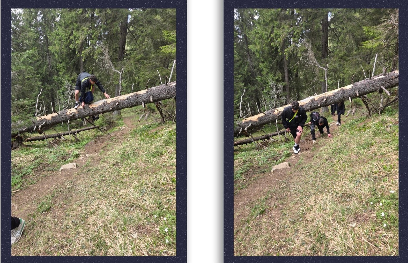 Cu mintea bântuită de imaginea ursului, coborâm în liniștea pădurii, rugându-ne să apară alți drumeți ca noi. Însă când ești în ziua când lucrurile se leagă, deodată în foșnetul dintre ramuri o căprioară se oprește să ne privească, iar apoi dispare printre copaci nu foarte speriată. Insuficient să o imortalizăm În plus, în scurt timp auzim voci. Nu, nu în mintea noastră ci cu adevărat.
